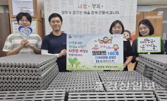 ▲ 동신산업(주)(대표 오영윤)은 6일 울산 중구 병영1동 행정복지센터를 찾아 취약계층 노인에 180만원 상당의 보온 발매트 100개를 전달했다.동신산업(주)(대표 오영윤)은 6일 울산 중구 병영1동 행정복지센터를 찾아 취약계층 노인에 180만원 상당의 보온 발매트 100개를 전달했다. 저작권자 © 울산일보 무단전재 및 재배포 금지 주하연 기자 다른기사 보기 페이스북 트위터 카카오스토리 URL복사 기사공유하기