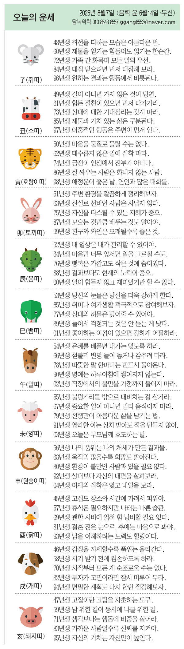 75년생 자신을 다스릴 수 있는 지혜가 중요.