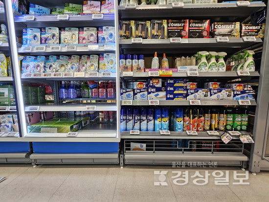 6일 찾은 울산 남구의 한 대형마트. 매년 여름이면 금세 동나던 모기향과 살충제가 진열대에 여유롭게 쌓여 있다. 반면 바로 옆 제습제 매대는 텅 비어 있다. 폭우가 몰고 온 습기에 제습제는 동났지만, 극한 폭염과 국지성 폭우로 개체 수가 급감한 모기 탓에 모기약은 제자리를 지키는 아이러니한 풍경이다.