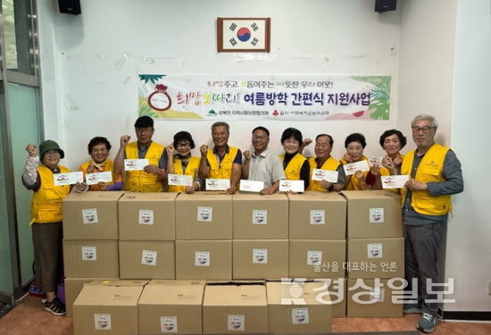 ▲ 울산 울주군 상북면 지역사회보장협의체(공동위원장 신용석, 정상화)는 7일 취약계층 초·중·고 학생을 대상으로 ‘희망보따리 여름 간편식 지원 사업’을 추진했다. 위원들은 상북면 행정복지센터 소회의실에서 학생들의 건강과 입맛을 고려해 치킨(쿠폰), 시리얼, 음료 등 간식 꾸러미를 직접 포장한 뒤 전달했다.