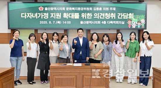 참석자들은 교육비 지원, 돌봄 등 다양한 분야에서의 혜택 강화를 포함해 다자녀가정의 실질적인 지원 확대가 필요하다는 데 공감하고 △사업별로 지원 기준이 ‘2자녀 이상’과 ‘3자녀 이상’으로 상이한 점 △울산만의 특수 시책 부족 △체감할 수 있는 정책 등에 대한 개선을 요구했다.