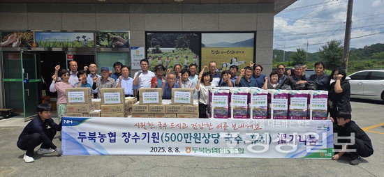 ▲ 울산 두북농협(조합장 서정익)은 지난 8일 울주군 두서면 인보리 두북농협 경제사업장에서 지역 취약계층의 건강한 여름나기를 위해 500만원 상당의 국수와 휴지 등 생필품을 전달했다.울산 두북농협(조합장 서정익)은 지난 8일 울주군 두서면 인보리 두북농협 경제사업장에서 지역 취약계층의 건강한 여름나기를 위해 500만원 상당의 국수와 휴지 등 생필품을 전달했다. 저작권자 © 울산일보 무단전재 및 재배포 금지 서정혜 기자 다른기사 보기 페이스북 트위터 카카오스토리 URL복사 기사공유하기