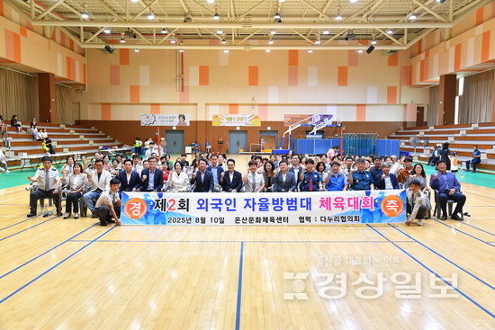 ▲ 제2회 외국인 자율방범대 체육대회가 10일 울산 울주군 온산문화체육센터에서 이순걸 울주군수, 최길영 군의장, 서범수 국회의원, 김현진 울주경찰서장, 군의원 등이 참석한 가운데 개최됐다.제2회 외국인 자율방범대 체육대회가 10일 울산 울주군 온산문화체육센터에서 이순걸 울주군수, 최길영 군의장, 서범수 국회의원, 김현진 울주경찰서장, 군의원 등이 참석한 가운데 개최됐다. 저작권자 © 울산일보 무단전재 및 재배포 금지 신동섭 기자 다른기사 보기 페이스북 트위터 카카오스토리 URL복사 기사공유하기