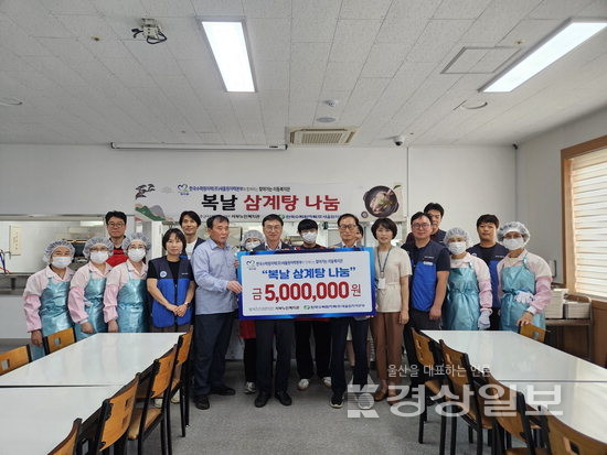 ▲ 한국수력원자력 새울원자력본부(본부장 소유섭)는 지난 8일 말복을 맞아 울주군 서부노인복지관에서 지역 노인 500여명을 대상으로 ‘찾아가는 이동복지관 삼계탕 나눔 행사’를 진행했다. 새울봉사대는 삼계탕을 직접 배식하고 따뜻한 인사를 전하며 온정을 나눴다.한국수력원자력 새울원자력본부(본부장 소유섭)는 지난 8일 말복을 맞아 울주군 서부노인복지관에서 지역 노인 500여명을 대상으로 ‘찾아가는 이동복지관 삼계탕 나눔 행사’를 진행했다. 새울봉사대는 삼계탕을 직접 배식하고 따뜻한 인사를 전하며 온정을 나눴다.