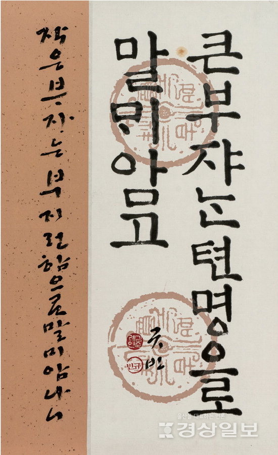 ‘50년, 삶을 쓰다’라는 부제로 열리는 이번 전시에서 김 서예가는 대표작품 22점과 신작 20점 등 총 42점의 작품을 선보인다. 또 김 서예가가 중국 등에서 수집해 소장하고 있는 오래된 연적(서예나 그림 작업 시 물을 담아두는 도구)과 벼루, 서진 등도 함께 전시한다.
