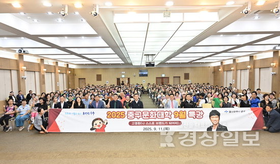 울산 중구는 11일 중구청 대회의실에서 2025년 중구문화대학 9월 주민특강을 개최했다. 특강에는 김영길 중구청장과 박경흠 중구의회 의장, 지역 주민 등 300여명이 참석했다. 작가이자 사업가 고명환씨가 강사로 나서 ‘나 스스로 브랜드가 되어라’라는 주제로 강연을 진행했다.