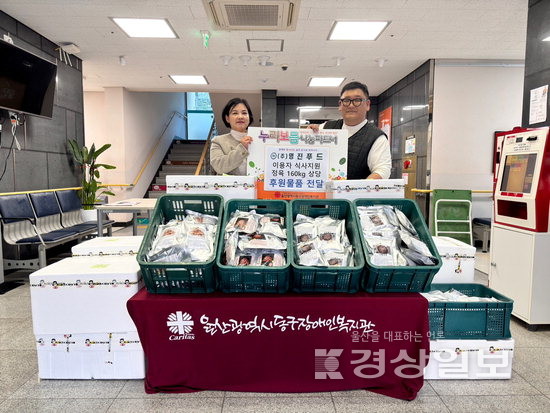 ▲ 울산지역 브랜드 대왕암등대갈비의 가맹사업본부 (주)명진푸드는 동구 소재 장애인복지관에 300만원 상당의 물품을 전달했다고 1일 밝혔다.울산지역 브랜드 대왕암등대갈비의 가맹사업본부 (주)명진푸드는 동구 소재 장애인복지관에 300만원 상당의 물품을 전달했다고 1일 밝혔다. 저작권자 © 울산일보 무단전재 및 재배포 금지 이형중 다른기사 보기 페이스북 트위터 카카오스토리 URL복사 기사공유하기
