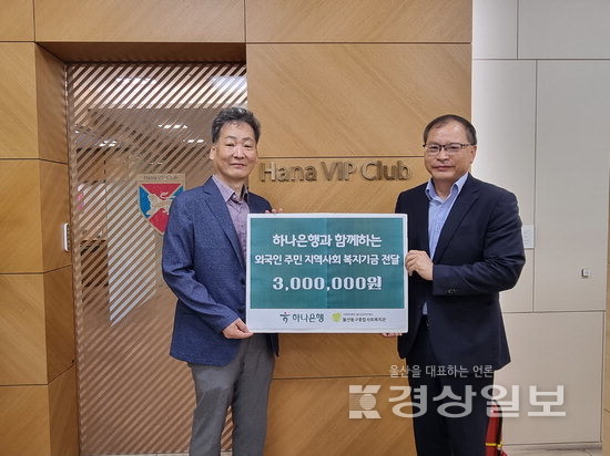 ▲ 하나은행 동울산지점은 1일 동구에 거주하는 외국인 주민들의 지역사회 적응과 교류를 응원하기 위해 울산동구종합사회복지관에 외국인 주민 지역사회 통합 복지기금 300만원을 전달했다.하나은행 동울산지점은 1일 동구에 거주하는 외국인 주민들의 지역사회 적응과 교류를 응원하기 위해 울산동구종합사회복지관에 외국인 주민 지역사회 통합 복지기금 300만원을 전달했다. 저작권자 © 울산일보 무단전재 및 재배포 금지 김은정 기자 다른기사 보기 페이스북 트위터 카카오스토리 URL복사 기사공유하기