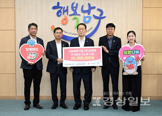 이날 열린 후원금 전달식은 서동욱 남구청장을 비롯해 김재일 (주)코엔텍 대표이사가 참석한 가운데 진행됐다.