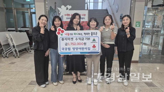 ▲ 울산 온양읍 망양어린이집(원장 신경미)은 13일 울주군 온양읍 행정복지센터에 망양 달빛 야시장 플리마켓 수익금 전액인 175만2000원을 기탁했다.울산 온양읍 망양어린이집(원장 신경미)은 13일 울주군 온양읍 행정복지센터에 망양 달빛 야시장 플리마켓 수익금 전액인 175만2000원을 기탁했다. 저작권자 © 울산일보 무단전재 및 재배포 금지 신동섭 기자 다른기사 보기 페이스북 트위터 카카오스토리 URL복사 기사공유하기