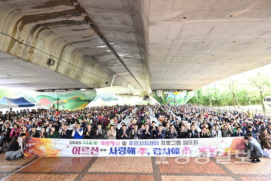 ▲ 울산 중구 다운동 행정복지센터(동장 김하형)와 다운동 주민자치위원회(위원장 김보곤)는 14일 신삼호교 아래 광장에서 김영길 중구청장과 박경흠 중구의회 의장, 이성룡 울산시의회 의장, 정태식 중구새마을지회장, 명일식 중구체육회장, 지역 노인 등 850여명이 참석한 가운데 경로잔치 및 주민자치센터프로그램 발표회를 진행했다.