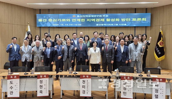 울산시의회 의원연구모임인 울산지역경제연구회(회장 천미경)는 15일 시의회 1층 시민홀에서 연구단체 회원과 학계 전문가, 공무원, 시민 등이 참석한 가운데 ‘울산 중심가로와 연계한 지역경제 활성화 방안 토론회’를 열고 다양한 의견을 교환했다.