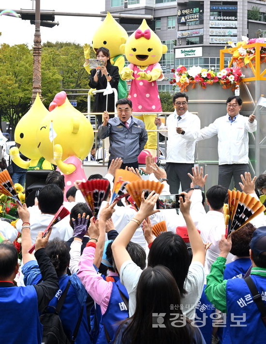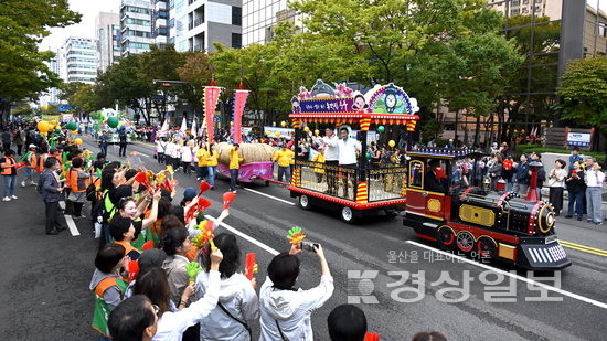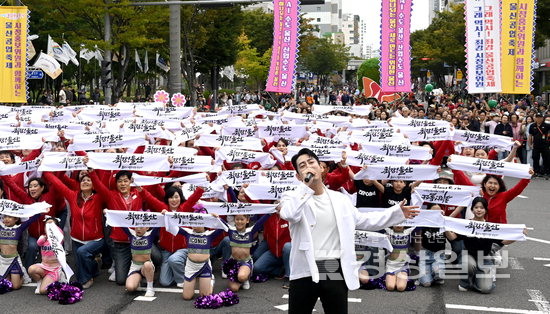 ○…이날 울산시 홍보대사인 가수 조성모와 배우 정수한은 울주군 퍼레이드카에 탑승해 시민들과 적극적으로 소통했다. 홍보대사들이 마이크를 잡고 인사말을 하자 흡사 팬미팅 현장이 된 것처럼 환호 소리가 커졌다. 울산시 홍보대사인 가수 테이는 지난해에 이어 올해도 시민들과 함께 대규모 플래시몹에 참여하며 축제의 열기를 더했다.
