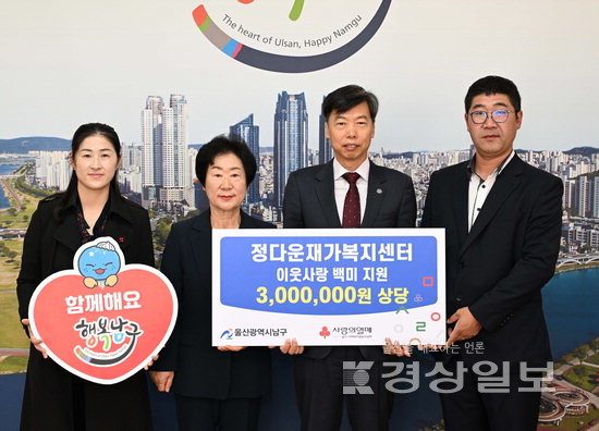 ▲ 정다운재가복지센터(센터장 강수희)는 지난 17일 울산 남구청을 방문해 300만원 상당 백미 10㎏ 100포를 울산사회복지공동모금회에 지정 기탁했다. 백미는 관내 저소득 장애인 가정과 장애인복지시설에 전달될 예정이다.정다운재가복지센터(센터장 강수희)는 지난 17일 울산 남구청을 방문해 300만원 상당 백미 10㎏ 100포를 울산사회복지공동모금회에 지정 기탁했다. 백미는 관내 저소득 장애인 가정과 장애인복지시설에 전달될 예정이다.