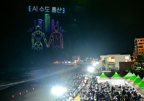 축제 마지막 날인 19일 강동몽돌해변에서 열린 드론쇼에서는 ‘울산에 울산사람이 있다’를 주제로 환상적인 광경을 연출했다. 1000대의 드론이 15분간 상공으로 날아오르는 멀티미디어 드론쇼를 선보여 눈길을 끌었다. 올해 드론쇼는 7000년 전 선사인들이 선물해 준 세계유산 ‘반구천의 암각화’에서 튀어나온 고래를 매개체로 철을 담금질하고 염전을 일구던 중·근세시대, 동해안 조그마한 어촌마을에서 산업수도로 성장한 근대, 산업도시에서 문화·생태정원도시로 급변한 현대 등 성장의 중심에 울산사람이 있다는 서사를 담았다.