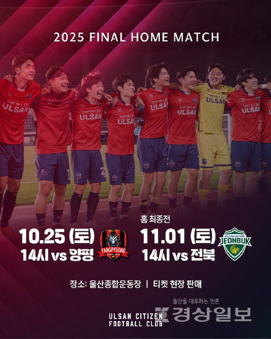울산시민축구단은 오는 25일 양평, 다음 달 1일 전북을 상대로 오후 2시 홈 최종전을 가진다.