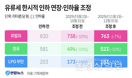 이에 따라 휘발유 인하율은 현행 10%에서 7%로, 경유와 액화석유가스(LPG)부탄은 각각 15%에서 10%로 조정된다.