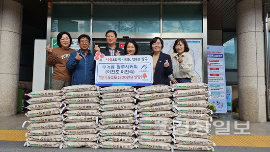 ▲ 울산 남구 무거동 딜쿠샤커피 대표인 이진호·허진숙 부부는 23일 관내 어려운 이웃과 사회복지시설 이용자를 위해 10㎏ 백미 50포를 무거동행정복지센터(동장 송복순)에 기탁했다.울산 남구 무거동 딜쿠샤커피 대표인 이진호·허진숙 부부는 23일 관내 어려운 이웃과 사회복지시설 이용자를 위해 10㎏ 백미 50포를 무거동행정복지센터(동장 송복순)에 기탁했다. 저작권자 © 울산일보 무단전재 및 재배포 금지 권지혜 기자 다른기사 보기 페이스북 트위터 카카오스토리 URL복사 기사공유하기