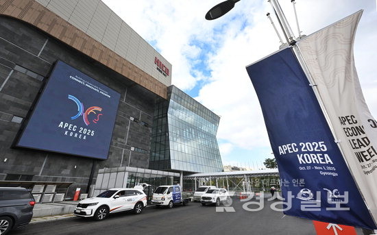 23일 경주 APEC 2025 정상회의가 일주일 앞으로 다가온 가운데 정상회의장소인 경북 경주시 화백컨벤션센터 주변 APEC을 알리는 현수막과 전광판이 설치돼 있다. APEC 정상회의는 10월31일부터 11월1일 개최된다. 김동수기자 dskim@ksilbo.co.kr