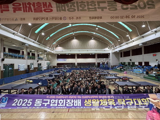 울산시동구탁구협회(회장 김동선)는 화정체육관에서 ‘2025 동구협회장배 생활체육 탁구대회’를 개최했다. 김종훈 동구청장과 박경옥 동구의회 의장이 참석했다. 통합 1부(1~6부)와 통합 2부(7~8부)에 걸쳐 200여명이 참가했다.
