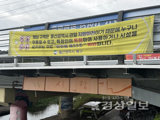북구는 최근 ‘하천변 특정인 독점 불가’ 현수막을 부착하고, 두차례 고시를 발송했다. 하지만 행정 절차상 즉각적인 철거는 어렵다는 입장이다.