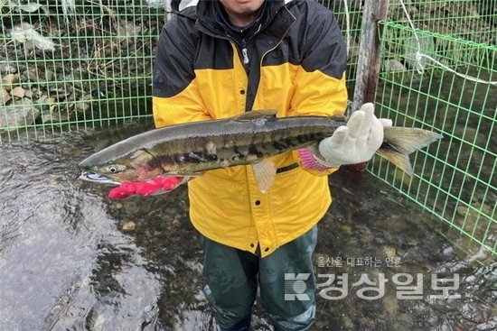 울주군 태화강생태관은 지난 24일 오후 3시10분께 구영교 일원에서 산란을 위해 회귀한 연어 2마리를 포획했다고 27일 밝혔다.