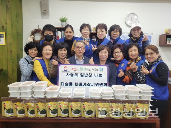 ▲ 울산 동구 대송동 바르게살기위원회는 28일 대송동 행정복지센터에서 사랑의 밑반찬 나눔 행사를 가졌다. 대송동 바르게살기위원회 회원들은 직접 시장에서 재료를 구입해 손수 밑반찬을 만들어 생활이 어려운 취약계층 12가구에 전달했다.