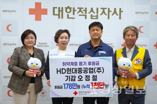 오정철 HD현대중공업 기감은 28일 울산 내 취약계층을 돕기 위한 성금 178만원을 대한적십자사 울산시지사에 전달했다. 오 기감은 지난 2017년 기계조립 직종 대한민국 명장으로 선정될 당시 받은 상금을 울산적십자사에 기부한 것을 시작으로 매년 기부를 이어가고 있다.