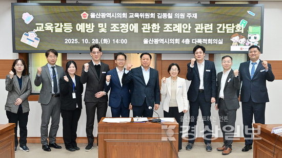 울산시의회 김동칠 의원은 28일 시의회 4층 다목적회의실에서 ‘교육갈등 예방 및 조정에 관한 조례안’ 제정을 위한 간담회를 열고 교육 현장에서 발생하는 갈등의 예방과 조정체계 구축 방안에 대해 논의했다.
