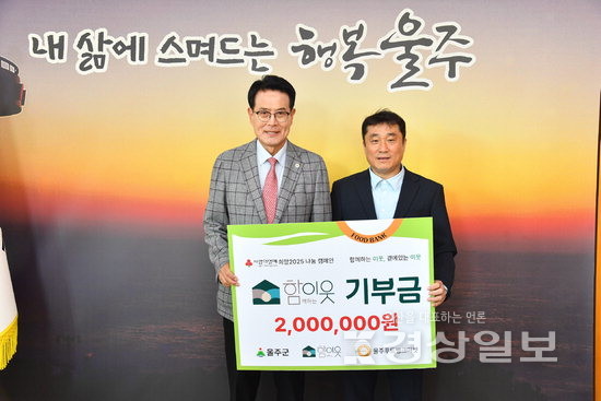 ▲ (사)함이웃(회장 김현진)이 29일 울산 울주군청 소회의실에서 이순걸 군수와 김현진 회장 등이 참석한 가운데 어려운 이웃을 위한 후원금 200만원을 울주푸드뱅크마켓(마켓장 손영순)에 전달했다.(사)함이웃(회장 김현진)이 29일 울산 울주군청 소회의실에서 이순걸 군수와 김현진 회장 등이 참석한 가운데 어려운 이웃을 위한 후원금 200만원을 울주푸드뱅크마켓(마켓장 손영순)에 전달했다. 저작권자 © 울산일보 무단전재 및 재배포 금지 신동섭 기자 다른기사 보기 페이스북 트위터 카카오스토리 URL복사 기사공유하기