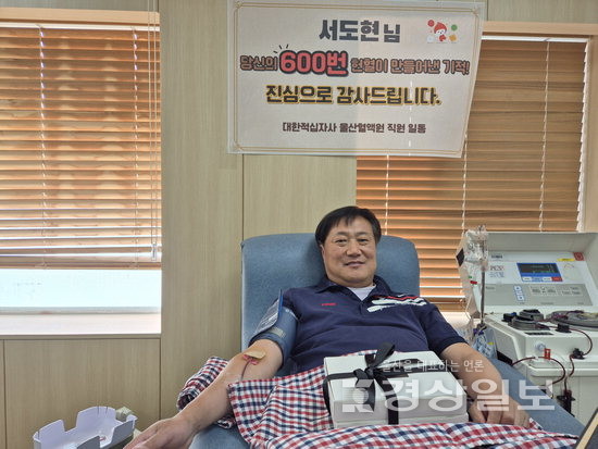 울산에서 헌혈 600회를 달성한 것은 네 번째다.