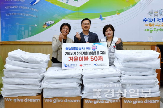 ▲ 울산항만공사(UPA)와 대한적십자사 울산지사는 30일 남구 야음장생포동 행정복지센터를 방문해 이불 50채를 전달했다. 전달된 이불은 기온변화에 대비하기 위해 지역의 홀몸노인 50가구에게 지급될 예정이다. UPA 제공울산항만공사(UPA)와 대한적십자사 울산지사는 30일 남구 야음장생포동 행정복지센터를 방문해 이불 50채를 전달했다. 전달된 이불은 기온변화에 대비하기 위해 지역의 홀몸노인 50가구에게 지급될 예정이다. UPA 제공