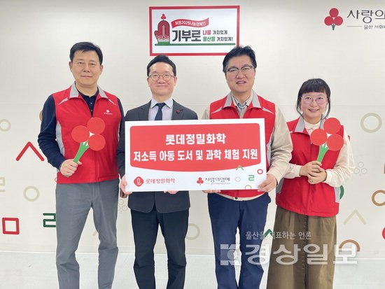 ▲ 롯데정밀화학은 지난달 31일 울산사회복지공동모금회(사무처장 양호영)를 찾아 지역 아동들의 학습 격차 해소와 과학 호기심 증진을 위해 ‘과학 도서·체험교실’을 지원했다.롯데정밀화학은 지난달 31일 울산사회복지공동모금회(사무처장 양호영)를 찾아 지역 아동들의 학습 격차 해소와 과학 호기심 증진을 위해 ‘과학 도서·체험교실’을 지원했다. 저작권자 © 울산일보 무단전재 및 재배포 금지 서정혜 기자 다른기사 보기 페이스북 트위터 카카오스토리 URL복사 기사공유하기