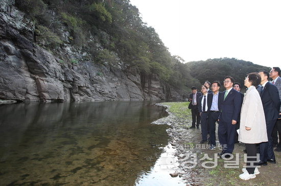 ▲ 우원식 국회의장이 지난달 31일 세계유산으로 등재된 ‘반구천의 암각화’를 방문해 반구대암각화를 살펴보고 있다. 울산시청 제공우원식 국회의장이 지난달 31일 울산을 찾아 지역 대표 독립운동가 고헌 박상진 의사 생가와 올해 유네스코 세계유산으로 등재된 반구대 암각화를 방문했다. 우 의장은 먼저 북구 박상진 의사 생가를 찾아 증손자인 박중훈씨와 인사를 나눈 뒤 생가를 둘러보며 항일독립운동의 숭고한 뜻을 기렸다. 이어 울주군 대곡천 일원 반구대 암각화를 방문한 우 의장은 울산시로부터 암각화의 역사적 가치와 보존관리 현황, 향후 활용계획 등에 대한 보고를 받았다. 석현주기자 저작권자 © 울산일보 무단전재 및 재배포 금지 석현주 기자 다른기사 보기 페이스북 트위터 카카오스토리 URL복사 기사공유하기