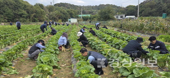 ▲ 대우여객자동차와 우리버스는 3일 울산 중구 성안동 우리버스 농장에서 올겨울 홀몸노인 등에게 전달할 김장에 쓸 배추 묶기 작업을 실시했다.대우여객자동차와 우리버스는 3일 울산 중구 성안동 우리버스 농장에서 올겨울 홀몸노인 등에게 전달할 김장에 쓸 배추 묶기 작업을 실시했다. 저작권자 © 울산일보 무단전재 및 재배포 금지 이춘봉 다른기사 보기 페이스북 트위터 카카오스토리 URL복사 기사공유하기