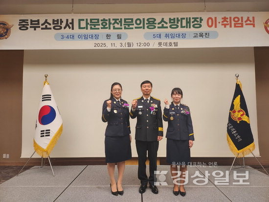 ▲ 울산 중부소방서(서장 유대선)는 지난 3일 롯데호텔에서 다문화전문의용소방대장 이·취임식을 개최했다. 이날 취임한 고옥진 대장은 소방 및 예방활동을 적극 지원하며 대원들 사이에서 모범이 돼왔다.울산 중부소방서(서장 유대선)는 지난 3일 롯데호텔에서 다문화전문의용소방대장 이·취임식을 개최했다. 이날 취임한 고옥진 대장은 소방 및 예방활동을 적극 지원하며 대원들 사이에서 모범이 돼왔다. 저작권자 © 울산일보 무단전재 및 재배포 금지 주하연 기자 다른기사 보기 페이스북 트위터 카카오스토리 URL복사 기사공유하기