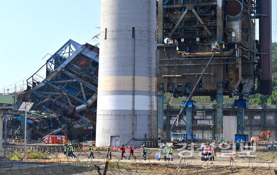 소방당국은 사고 직후부터 혼신의 힘을 다해 수색해왔다. 그러나 현장은 철근과 대형 H빔 등이 미로처럼 뒤섞여 있어 폭격을 맞은 모습인데다 추가 붕괴 위험 우려까지 커 난항을 겪었다. 실제 8일 오후 보일러 타워의 기울기 센서에서 경보가 울리며 수색은 한때 중단됐다. 5호기 인근을 최대한 밝게 비추고 있던 조명들도 철수되면서 현장은 이날 일출 전까지 암흑천지였다. 수색·구조 작업은 이날 오전 10시30분께 재개됐는데, 이때 사고 당일 구조물에 팔이 낀 채로 발견된 김모(44)씨가 사망 판정을 받은 지 약 54시간 만에 수습됐다. 당시 유일하게 구조대원들과 의사소통이 가능했던 매몰자였던 김씨는 심폐소생술까지 했지만 끝내 살아 돌아오지 못했다.