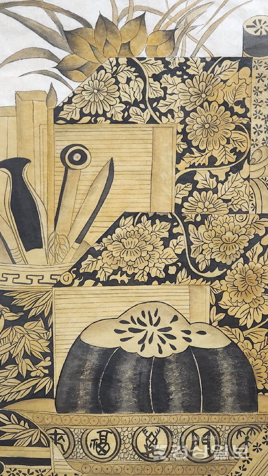 류빈 작가는 ‘파초도’ 등 8점을, 김란주 작가는 ‘책가도’ 등 6점을, 김미연 작가는 ‘어변성룡도’ 등 7점 등 총 21점을 선보이고 있다.