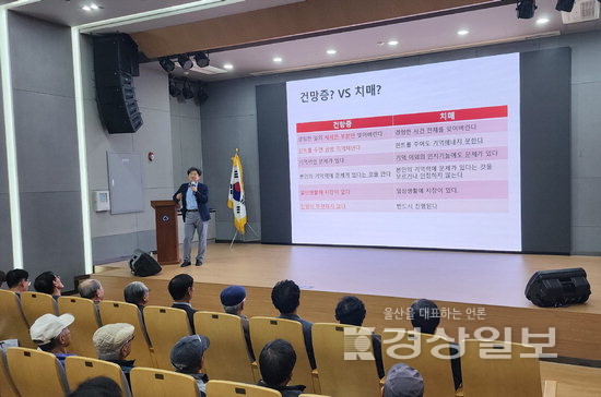 ▲ 동강의료재단 동강병원은 12일 중구 태화동 태화새마을금고 대강당에서 중구노인지회 노인들을 대상으로 치매예방 건강강좌를 실시했다. 김성률 동강병원 뇌신경센터장이 치매의 증상과 진단, 치료법 등에 대해 강의했다.동강의료재단 동강병원은 12일 중구 태화동 태화새마을금고 대강당에서 중구노인지회 노인들을 대상으로 치매예방 건강강좌를 실시했다. 김성률 동강병원 뇌신경센터장이 치매의 증상과 진단, 치료법 등에 대해 강의했다.