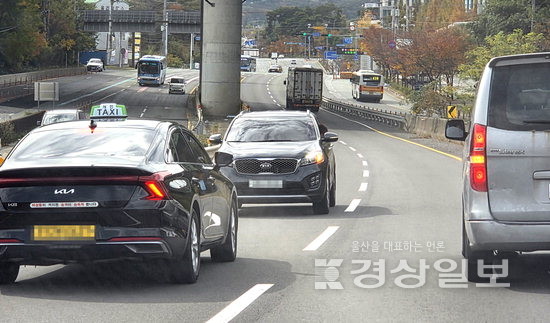 12일 오전 11시19분께 울산 울주군 율리육교 일원 도로가 정체현상을 빚었다. 원인은 울주군청 방향에서 올라오던 한 역주행 SUV였다.