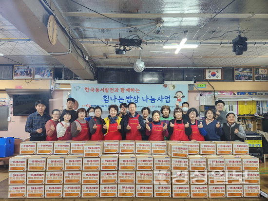 ▲ 울산 중구자원봉사센터(이사장 박민호)와 한국동서발전(사장 권명호)는 13일 천사운동본부 무료급식소에서 8회차 힘나는 밥상 나눔사업을 진행했다. 이날 두 기관은 정 봉사단(회장 정은숙)과 함께 김장을 담가 취약계층 100가구에 전달했다.울산 중구자원봉사센터(이사장 박민호)와 한국동서발전(사장 권명호)는 13일 천사운동본부 무료급식소에서 8회차 힘나는 밥상 나눔사업을 진행했다. 이날 두 기관은 정 봉사단(회장 정은숙)과 함께 김장을 담가 취약계층 100가구에 전달했다.