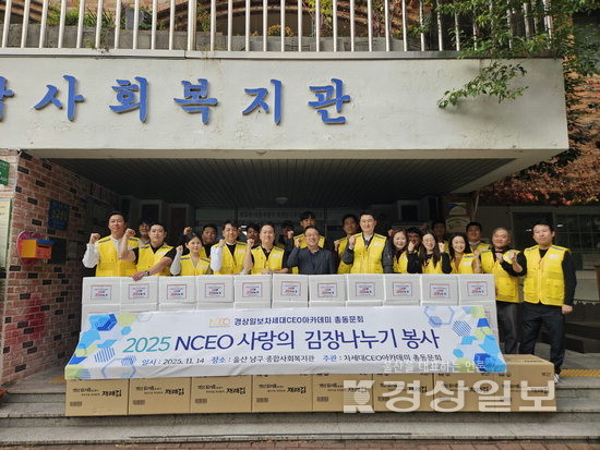 ▲ 본사 차세대 CEO 아카데미 총동문회(회장 최시훈)가 지난 14일 울산남구종합사회복지관에 김장 8㎏ 30박스와 옛간 김 5박스를 전달하는 김장나누기 봉사활동을 펼쳤다.본사 차세대 CEO 아카데미 총동문회(회장 최시훈)가 지난 14일 울산남구종합사회복지관에 김장 8㎏ 30박스와 옛간 김 5박스를 전달하는 김장나누기 봉사활동을 펼쳤다. 저작권자 © 울산일보 무단전재 및 재배포 금지 신동섭 기자 다른기사 보기 페이스북 트위터 카카오스토리 URL복사 기사공유하기