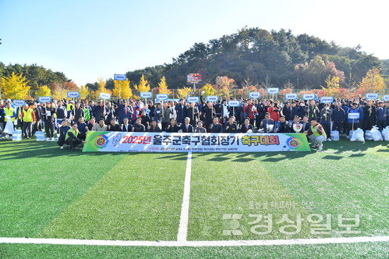 ▲ 2025년 울주군축구협회장기 축구대회 개막식이 16일 울산 울주군 서생면 간절곶 스포츠파크에서 열린 가운데 이순걸 울주군수와 최길영 군의장 및 군의원, 이용식 군체육회장 등 참석자들이 기념촬영을 하고 있다.2025년 울주군축구협회장기 축구대회 개막식이 16일 울산 울주군 서생면 간절곶 스포츠파크에서 열린 가운데 이순걸 울주군수와 최길영 군의장 및 군의원, 이용식 군체육회장 등 참석자들이 기념촬영을 하고 있다.
