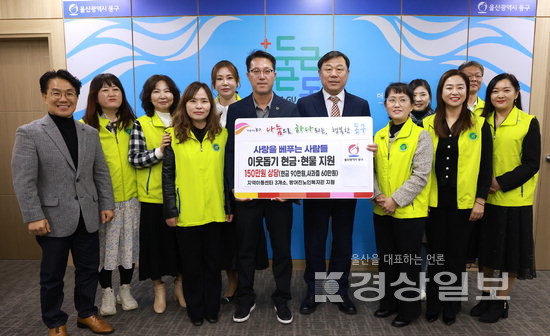 ▲ 울산 동구 사랑을베푸는사람들은 17일 동구청을 방문해 관내 지역아동센터와 방어진노인복지관을 지원해 달라며 성금 및 물품 150만원을 김종훈 동구청장에게 전달했다.울산 동구 사랑을베푸는사람들은 17일 동구청을 방문해 관내 지역아동센터와 방어진노인복지관을 지원해 달라며 성금 및 물품 150만원을 김종훈 동구청장에게 전달했다. 저작권자 © 울산일보 무단전재 및 재배포 금지 김은정 기자 다른기사 보기 페이스북 트위터 카카오스토리 URL복사 기사공유하기