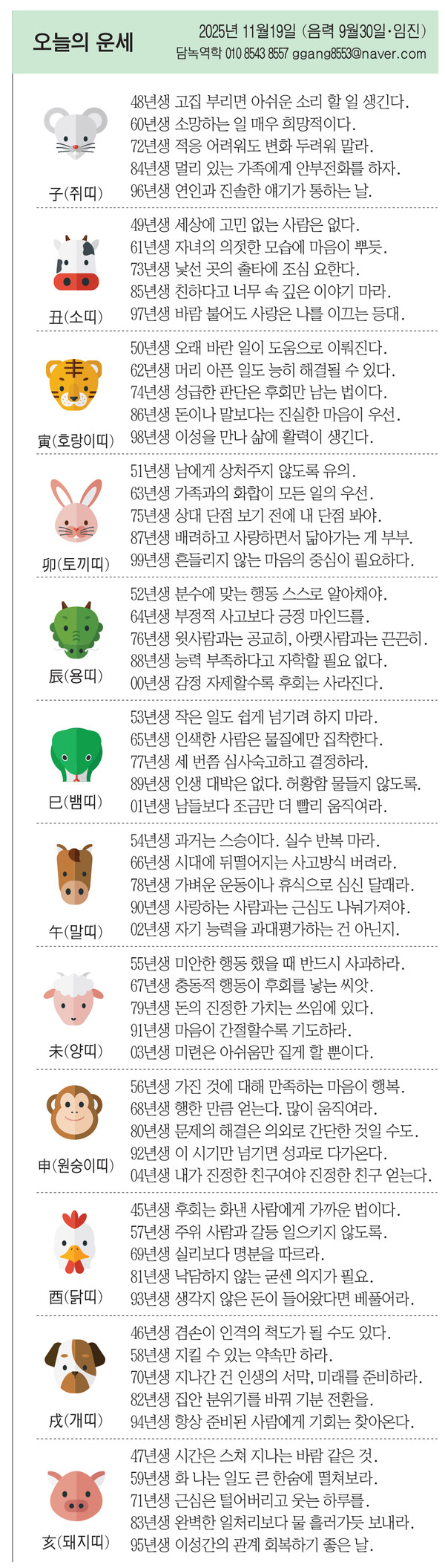 51년생 남에게 상처주지 않도록 유의.