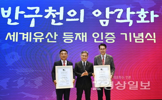 이어 허민 국가유산청장이 유네스코 세계유산위원회에서 공식 전달된 등재 인증서를 김두겸 시장과 이순걸 군수에게 각각 전달하며, 반구천의 암각화가 대한민국의 17번째 세계유산으로 공식 인정받았음을 다시금 확인했다. 이는 2010년 잠정목록 등재 이후 15년 만에 거둔 성과다.