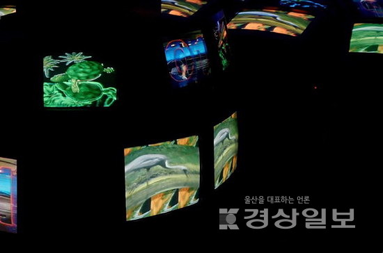 울산시립미술관의 대표 소장품인 백남준의 ‘거북’(1993)은 166대의 모니터에 흐르는 전자의 움직임으로 거북의 등갑과 몸을 형성한다. 시간에 따라 변화하는 화면을 품은 ‘거북’은 모니터 속 흐름이 작품 전체에 생동감을 부여하며 마치 살아 있는 유기체처럼 느껴지게 한다.