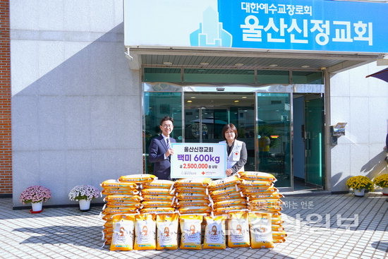 ▲ 울산신정교회(목사 김보성)는 19일 남구 소외계층을 돕기 위해 250만원 상당의 백미 600㎏을 대한적십자사 울산시지사(회장 채종성)에 기부했다.울산신정교회(목사 김보성)는 19일 남구 소외계층을 돕기 위해 250만원 상당의 백미 600㎏을 대한적십자사 울산시지사(회장 채종성)에 기부했다. 저작권자 © 울산일보 무단전재 및 재배포 금지 권지혜 기자 다른기사 보기 페이스북 트위터 카카오스토리 URL복사 기사공유하기