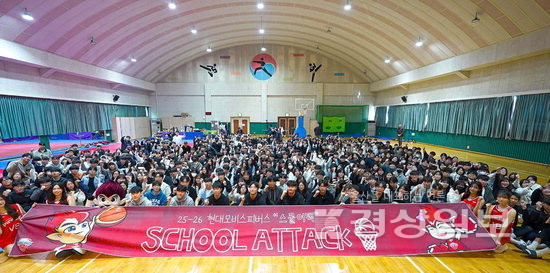 스쿨어택은 구단에서 꾸준히 시행하고 있는 이벤트 중 하나로 연고지역인 울산 관내 학생들을 직접 찾아가 농구를 알리고, 선수단과 교류하는 대표적인 지역 밀착 이벤트다.