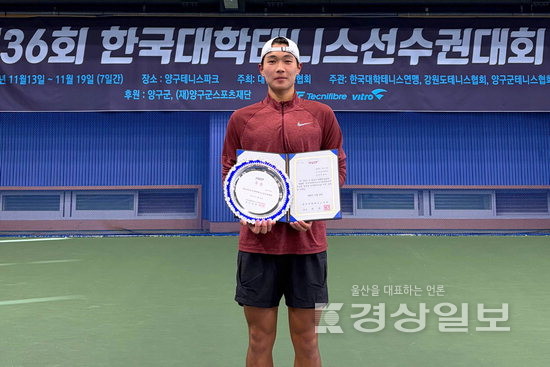 울산대는 이웅비(국내랭킹 27위)가 19일 강원도 양구군 양구테니스파크에서 열린 대회 마지막 날 결승에서 순천향대 오승원을 2대0(6대4, 6대4)으로 제압하며 정상에 올랐다고 밝혔다.